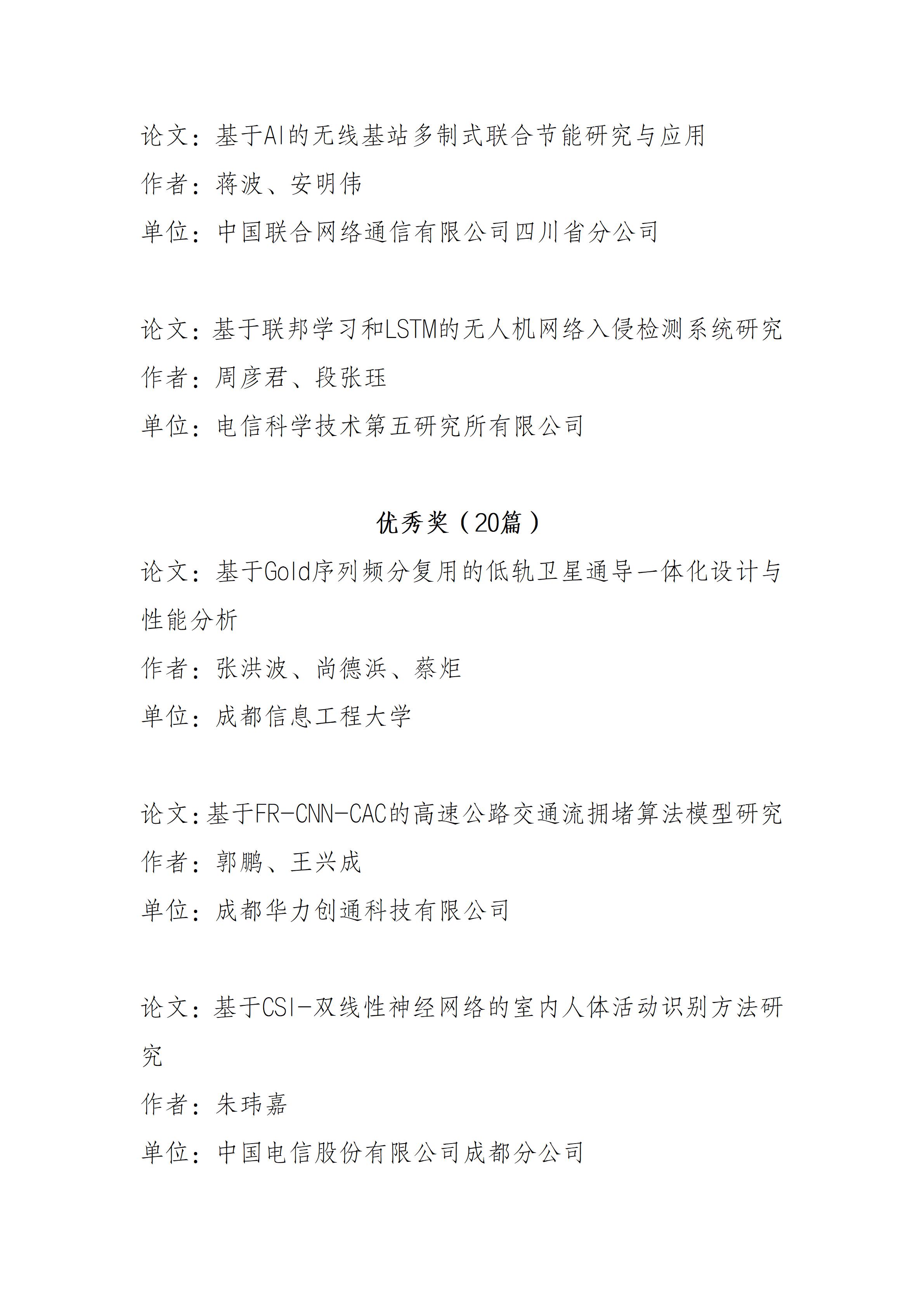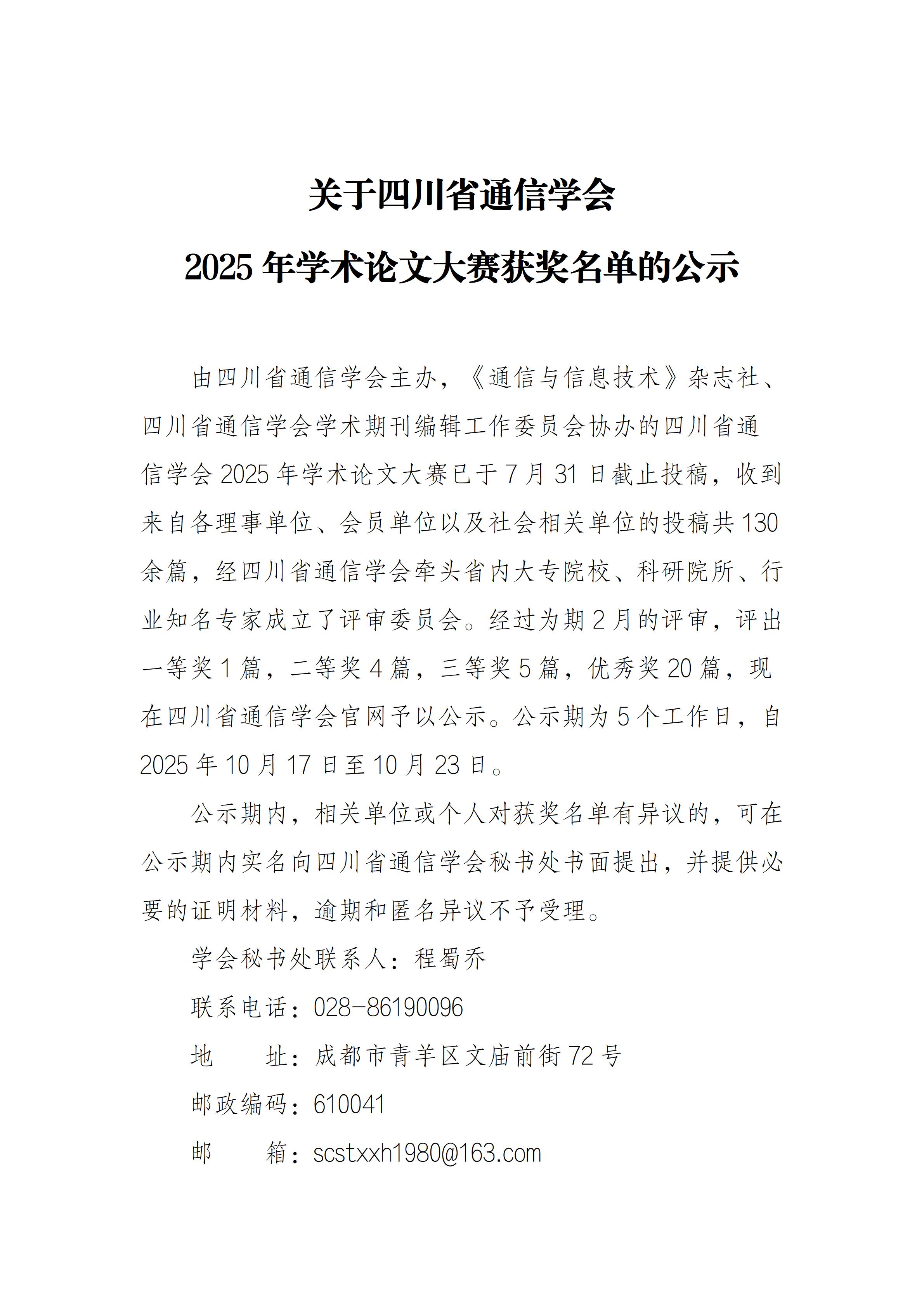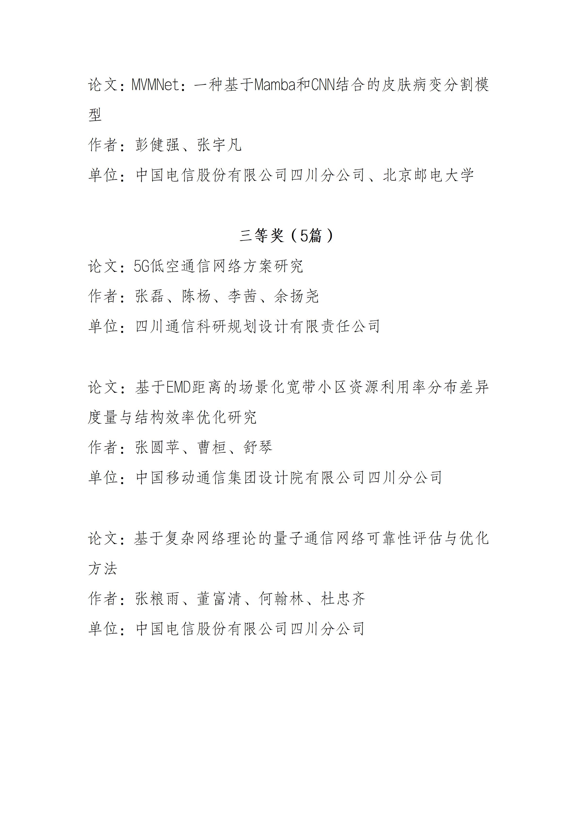 关于四川省通信学会2025年学术论文大赛获奖名单的公示