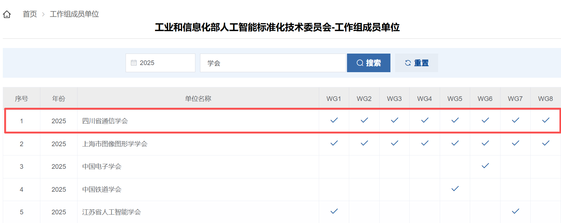 人工智能标准化技术委员会(MIIT/TC1)的下设8个工作组,分别为WG1总体组、WG2数据组、WG3智算系统组、WG4模型与平台组、WG5赋能应用组、WG6具身智能组、WG7智能产品与服务组、WG8安全治理组。