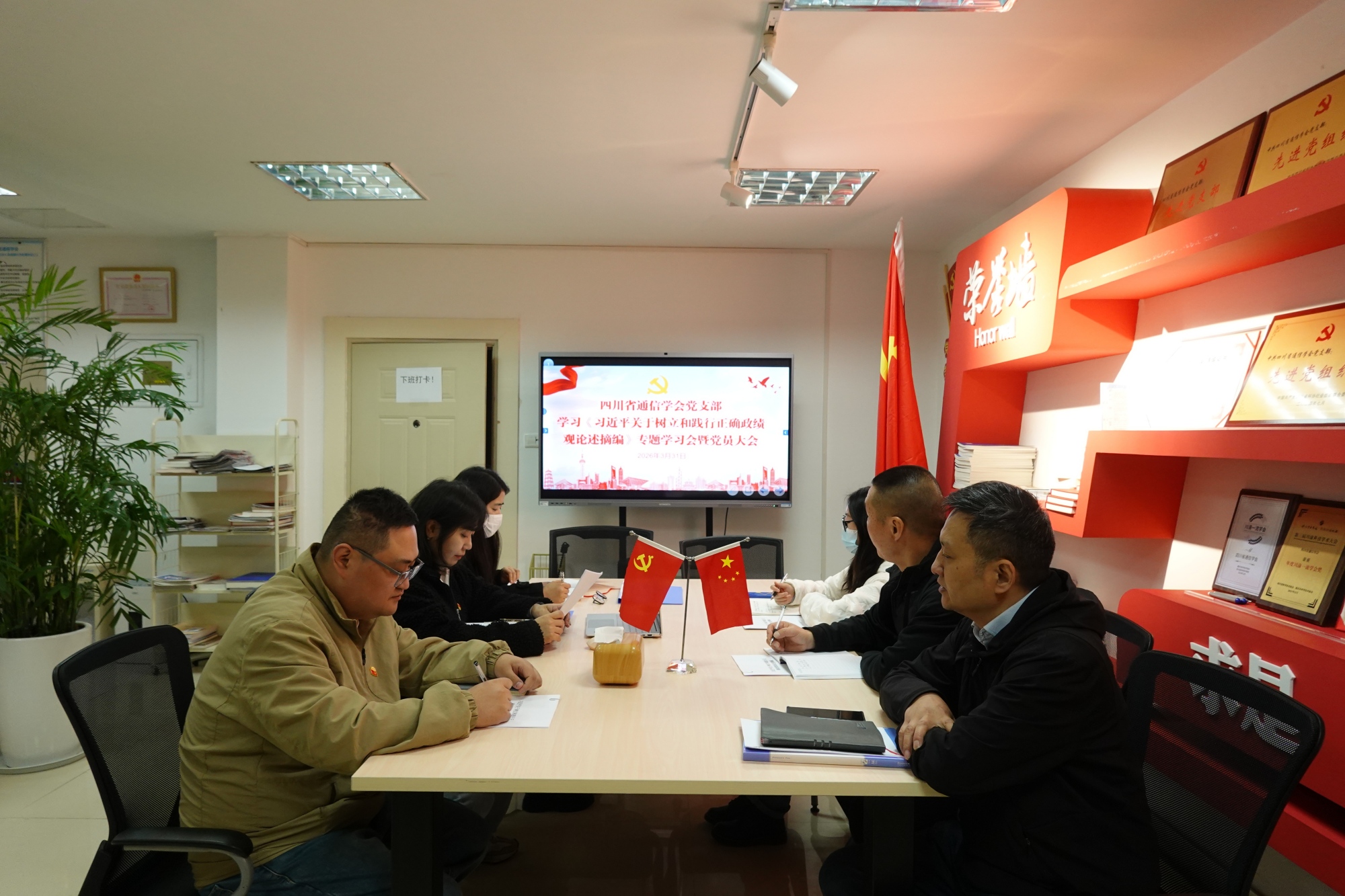 3月31日,四川省通信学会党支部召开专题学习会暨党员大会,深入学习贯彻习近平总书记关于树立和践行正确政绩观的重要讲话、指示精神,传达落实省科协党组相关工作部署。支部书记任彬主持会议,全体党员、入党积极分子及秘书处工作人员参加会议。